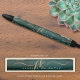 Adicione um toque de elegância e estilo com esta caneta personalizada com detalhes em turquesa, ágata azul esverdeado acentuada com veias de brilho dourado e seu monograma ou iniciais em um estilo de escrita à mão ou assinatura elegante com floreios e nome mostrado em dourado e branco. ASSISTÊNCIA: Para obter ajuda com a modificação do design ou personalização ou se você gostaria de itens coordenados, entre em contato com o designer ANTES DE COMPRAR através da guia de MENSAGEM do Zazzle Chat abaixo ou envie um e-mail para makeitaboutyoustore@gmail.com.