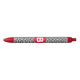 Caneta Preta Geometric Black and White Pattern Red Monogram