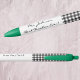 Padrão clássico de xadrez búfalo preto e branco cobrindo metade da caneta com 'Melhor Professor de Todos os Tempos!' em uma fonte de caligrafia e o nome do aluno em fundo branco. Esta caneta pode ser editada para qualquer tema ou destinatário imaginável. Altere facilmente nomes e texto para torná-lo seu usando o modelo fornecido. Você também pode editar o estilo da fonte, cor e tamanho. Tinta preta e acabamento em verde ou escolha suas próprias cores. Compra mínima de 2. Consulte "Sobre" para mais informações. Feito nos EUA.