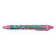 Caneta Preta Padrão Floral Teal Trendy com Monograma Personaliz