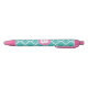 Caneta Preta Teal Quatrefoil Pattern Custom Pink Monogram