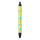 This stylish pen showcases a neon yellow background with a playful Memphis geometric retro pattern in bright pink and turquoise accents. Perfect for adding a touch of vibrant 80s nostalgia to your everyday writing essentials.