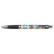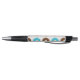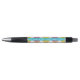 Esta caneta apresenta um padrão de rosquinhas com gelo pastel e aspersão. A banda azul clara no meio lê "rosquinha se preocupa, seja feliz!" em letra branca.