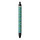 Uma caneta com um azulejo quadrado repetido (sem borda) com um nó celta azul-esverdeado contra um fundo preto. Escolha sua cor de tinta!