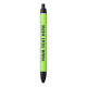 Caneta verde neon com texto personalizado. Tinta preta, azul ou vermelha. Design personalizável para a escola, escritório ou como presente promocional de negócios para o marketing. Excelente também para graduação, festa de solteira etc. canetas impressas personalizadas com seu anúncio ou logotipo. Tipografia personalizável. Altere a quantidade para obter o preço mais barato por caneta.