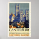 Poster de viagens da ferrovia Vintage de Canterbury, Reino Unido. Publicado em 1937. Observe que nossos posters são reproduções de alta qualidade baseadas em exames profissionais de alta resolução dos originais. Nosso processo de retoque manual não envolve o uso de filtros que removem qualquer detalhe ou textura original que você verá nos impressões originais. Todos os detalhes permanecem intactos. Cores corrigidas. Imperfeições removidas. Imagem cortesia da Biblioteca do Congresso.