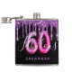 Para uma festa de aniversário moderna e moderna. Um clássico fundo preto elegante. Com o texto: 60 Fabuloso. Personalize e adicione um nome. Texto branco e roxo colorido. A palavra Fabuloso é escrita com um moderno estilo escrito à mão. A idade de 60 anos é escrita com um script de estilo de balão.