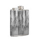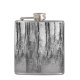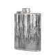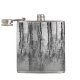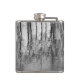 Este frasco preto, prateado, branco e cinza, de arte fina, apresenta reflexões em árvores que fazem um padrão de abstrato brilhante no lago.