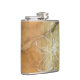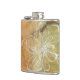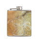 O fundo desta pintura de Jennifer Goldberger parece uma mesa com uma fenda perfurada. Há também uma abstrato de silhueta de uma flor feita em tinta branca, que mal supera o fundo marrom.