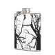 Este frasco de anca apresenta um padrão de abstrato artístico, preto e branco do topo de uma tulipa no inverno, com ramos nuos na silhueta.