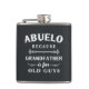 Grandfather is for old guys, so he's Abuelo instead! Treat a beloved grandpa to this awesome flask this Father's Day, Grandparents Day, birthday, or holiday. Cool design features the quote in white vintage style lettering on a soft charcoal black background.