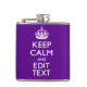Seu personalizado "Mantenha Calma" dizendo em uma bela decoração personalizada do estilo de sotaque roxo. Um estilo "Manter Calmo" personalizado dizendo em um presente gentil. Humorístico ou caprichoso experimente suas palavras criativas em duas linhas editáveis de texto. Lembre-se de usar letras CAPITAL para obter melhores resultados. Use o link "Perguntar a este Designer" para entrar em contato conosco com suas solicitações especiais de design ou para obter assistência com suas necessidades de personalização.