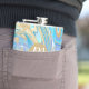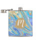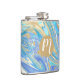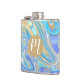 Um elegante e moderno design de ouro brilhante falso, azul e tons de aqua todos se misturaram em um efeito líquido de mármore/derramamento de tinta. Esta trabalho de arte foi feita para dar a sensação de geodes & marble, ou uma tinta líquida derramando arte. Personalize esta design adicionando sua inicial ao crachá do monograma.