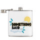 Você sabe essa voz na parte de trás da sua cabeça quando se prepara para esgueirar uma bebida... enquanto joga golfe... ou sai com as garotas... ou na festa de aniversário das crianças? ENTÃO... "Algo disse" ...NÃO BEBA E DIRIJA... Sim, você ouviu a voz dentro da sua cabeça corretamente. Pegue um DD.. (motorista designado) e carregar com o seu frasco ... é o que "Simething Said" *SOMENTE PARA USO ADULTO* "Algo dito" se você estiver abaixo de 21, este produto NÃO é para você ❣️