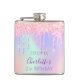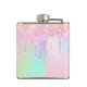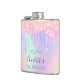 Para uma festa de aniversário glamourosa de 21 ruas (ou qualquer idade) - Um arco-íris, fundo holográfico colorido unicórnio. Decorado com pingos de brilho rosado e púrpura, pintura pingando aparência. Personalize e adicione seu nome, letras roxas O nome é escrito com um script de estilo moderno, escrito à mão.