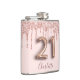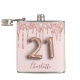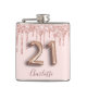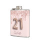 Um presente para uma festa feminina e glamourosa de aniversário de 21 anos. Um rosa de ouro claro, fundo cor-de-rosa com glitter rosa dourado elegante, aparência de pingar tinta. O texto: O nome é escrito em ouro rosa escuro com uma escrita de estilo moderna, escrita à mão. Personalize e adicione um nome. O número 21 é escrito com uma fonte no estilo do balão rosa dourado.