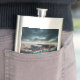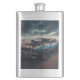 Blue Classic 1969 Chevy Camaro com soprador e manchas de ferrugem no deserto durante o apocalipse.