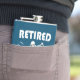 Você está aposentado e o único trabalho que você tem que fazer é ir esquiar. Este design de excelente tem um esquiador com texto em negrito.