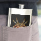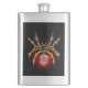 Aranha mecânica, com pá-pá de ouro, engrenagens de latão e uma lâmpada de vidro vermelha sobre fundo preto. Estilo Steampunk.
