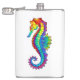 Articulação artificial, brilhante, arco-íris, cavalo de mar poligonal sobre fundo branco. Tatuagem brilhante.