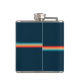Ilustração geométrica de padrões de arcos duplos com estilo retrorativo com riscas de cor azul, azul, vermelha e bege em fundo azul escuro.