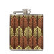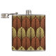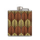 Flask in a vintage Art Deco wallpaper, com base numa pena estilizada - castanho-ferrugem e amarelo-camurça-claro, sobre fundo castanho-escuro de chocolate