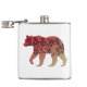 Esta design é o esboço de um urso com um pomar vermelho ou marrom para bege de gradiente de cor e a silhueta de um dentro de árvore.