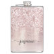 Flask Personalizado com Nome em Grafia de Letra Manual com Brilho Rosa Dourado Metalizado Monograma Glam Feminino. Esses designs apresentam seu primeiro nome em uma linda tipografia de letra manual com cauda ornamentada, em folha metálica cor de rosa dourado com brilho glamouroso na cor rosa. São fáceis de personalizar. Ótimo presente feminino e elegante para festa de despedida de solteira, presente de casa nova, também para Festa de Despedida de Solteira, aniversário, dia das mães, casamento, festa de 16 anos, chá de noiva, para festa de formatura e é para a garota que ama coisas únicas e estilosas com brilho.