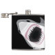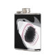 Desenho engraçado de um grande tubarão branco que pula das ondas com suas fileiras múltiplas da exibição aberta larga das maxilas dos dentes muito afiados. Para mergulhadores de mergulhador, os nadadores, mergulho batem etc. ou qualquer um com agressivo ou o risco que toma tendências.
