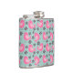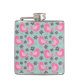 Polka pontilhou pássaros cor-de-rosa e flores de vinho profundo em um fundo azul, um design branco bonito, divertido e colorido que é excelente tanto para crianças quanto para adultos.