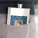 Frasco personalizado de xadrez azul e preta, adornado com uma fotografia acarinhada, criando uma guarnição única que combina o estilo e a sentimentalidade sem crueldade.