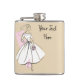 Um design de século de médio com um toque retrorreflector com desenho de linha de uma noiva em rosa e branco sobre um fundo de mudança de cor neutra. Inspirados em padrões de vestidos e ilustrações de moda dos anos 50 e 60. Um design personalizável para você personalizar com seu próprio texto, imagens e ideias. Uma imagem de arte digital original criada por Jess Perry no QuirkyChic Retro.