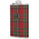 Frasco de bebendo de na moda 8 onças com o padrão clássico clássico de xadrez Real Stewart tartan tradicional, vermelho, azul, verde, preto, amarelo e branco. Personalize o monograma de três letras, na placa de metal, para atender às suas necessidades. Ideia de presente de excelente para qualquer cara e especialmente excelente como presente de festa de casamento para padrinhos de casamento.