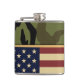 Bandeira americana patriótica no fundo verde militar do teste padrão da camuflagem.