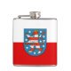 Frasco de vinilo com bandeira variante da Turíngia; design com duas bandas horizontais de vermelho e branco e emblema com leão no centro