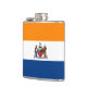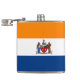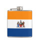 Flask com a bandeira de Albany, Nova Iorque. Uma bandeira laranja, branca e azul com o emblema da cidade no centro