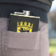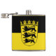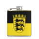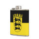 Frasco de vinilo com bandeira variante de Baden-Württemberg; design com duas bandas horizontais de preto e amarelo (ouro) e emblema com blindagem com três leões pretos no centro