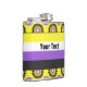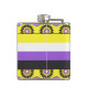 Frasco de vidro revestido de vinilo com a bandeira do orgulho não binário e um padrão de flores geométricas sem costura, nas cores da bandeira do orgulho; design de orgulho amarelo, branco, roxo e preto num fundo amarelo com um modelo de texto editável para o seu nome ou mensagem