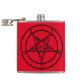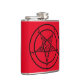 Pentagrama Flask. Aqui está um frasco legal para o satanista, ocultista, bruxa ou cabeça-metálica apresentando um pentagrama preto de Baphomet em crimson red. Isso fará bebendo qualquer que seja o seu veneno... muito mais divertido e malvado. Dar como presente a um bebedor satã, alguém que goste de Baphomet, uma bruxa ou alguém interessado no oculto. Ventiladores de metal também gostarão deste balão maravilhoso.