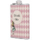 Adicione um pouco de Alice no País das Maravilhas com esta design. Ela mostra Alice chegando em direção às palavras "Beba-me" no centro com um padrão mauve de tabuleiro de xadrez ao seu redor. Este design adiciona um pouco de maravilha e humor do livro de histórias, com as adoráveis cores da horta e da mauve rosada.