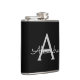 Monograma Prateado e Preto Adicione Seu Próprio Nome Fator Flask. Isto faz o doce e perfeito aniversário de 16 anos, casamento, chá de panela, aniversário, chá de fraldas ou festa de solteira presente para alguém que ama luxo de luxo e estilos quíticos.