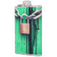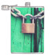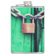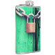 Este frasco tem uma fechadura e uma corrente.