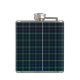Flask com o padrão de tartan da família para Clan Campbell de Argyll. Xadrez escocesa de 1815 em azul escuro e verde, com realces amarelos e brancos.