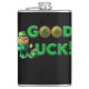 Um Leprechaun engraçado com um terno verde com barba vermelha e uma moeda de ouro na mão lhe dá boa sorte!