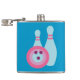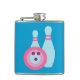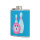 Esta ilustração da boliche retrorreflectora apresenta uma bola de boliche rosa, roxa e azul com círculos divertidos na frente de dois pinos azuis brilhantes com faixas rosa! Esta arte inspirada em vintage é gatinha, original e faria um presente de excelente para um jogador de boliche!