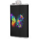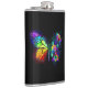 Arco-íris, borboleta monarca luminosa, pintada artisticamente com buquê de rosas iridescentes, brilhantes e luminescentes sobre fundo preto. Borboleta-arco-íris.