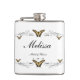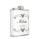 Borboletas de cauda redonda amarela e preta do leste com espirais florais pretos, Madrinha de casamento keepsasaké Flask. Um obrigado madrinha de casamento divertido, seu presente! Simbolicamente, a borboleta está muitas vezes associada à mudança, transformação, celebração, amor jovem e alma.