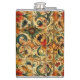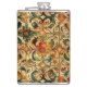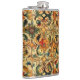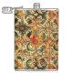 O produto apresenta um padrão de ornamentado uniforme com um estético rico e antigo. Ele apresenta um design de alto detalhe de elementos florais e botânicos girando em tons quentes e úmidos de ouro, laranja, vermelho e verde. A composição inclui flores, folhas e cercas intricadamente fundidas, criando um sentido de profundidade e movimento.