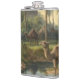 Pintura vinícola de uma cena botânica com quatro dromedários em frente a um palácio indiano próximo a um rio