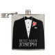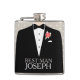O melhor homem vestido de forma inteligente em um frasco gráfico de casamento de terno e arco preto. Lê o melhor homem Joseph. Personalize com seu próprio nome e título. Uma ideia personalizada de presente de excelente para homens se ligando em noites de dólares / noites de embaixamento, ensaios de casamento ou como um favor de casamento.
